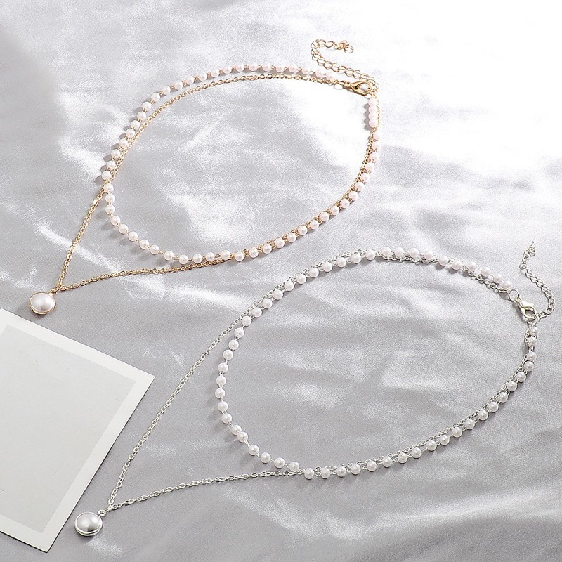 Aksesoris Fashion > Kalung > Rantai & Link > kalung mutiara berlapis dua korean style