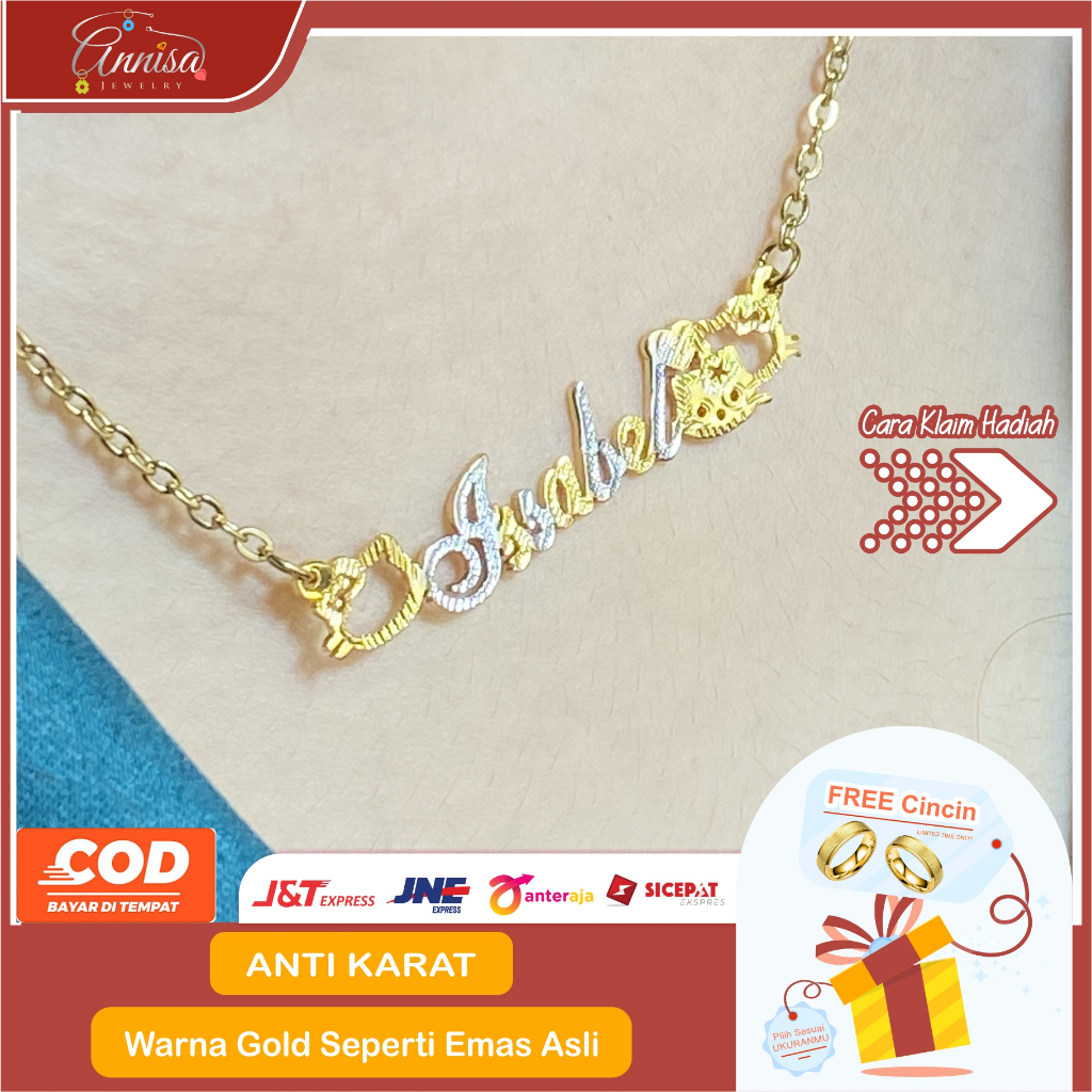 Kelebihan Produk : 1. Warna Sangat Kinclong Karena dilapisi Emas Murni 24 K 2. Warna Sangat Awet Bertahun - tahun dan Tahan lama & Anti Karat. 3. Produk bisa disepuh/ dicucikan. 4. Custom design sepuasnya 5. Bisa Pilih Font dan Aksen Tambahan, Cek Font Dll di Profil Toko Kami 6. Bisa Ganti Rantai Tersedia 20+ Rantai Pilihan 7. Mau rantai Lebih Atau Ukuran Menjadi 60 Cm ? Extra Rantai Mulai 10 ribu Tersedia disetiap Variasi Produk 8. Dipakai Sangat Cantik Seperti Emas Asli 9. Free Box Kekinian