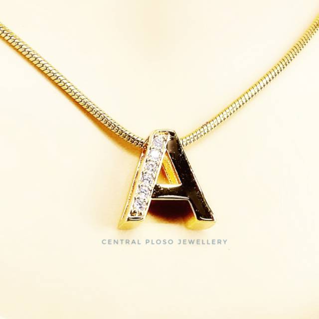Kalung dengan Liontin huruf yang bisa dibentuk menjadi nama. Liontin berhiaskan permata Zirconia yang indah dan bersinar
