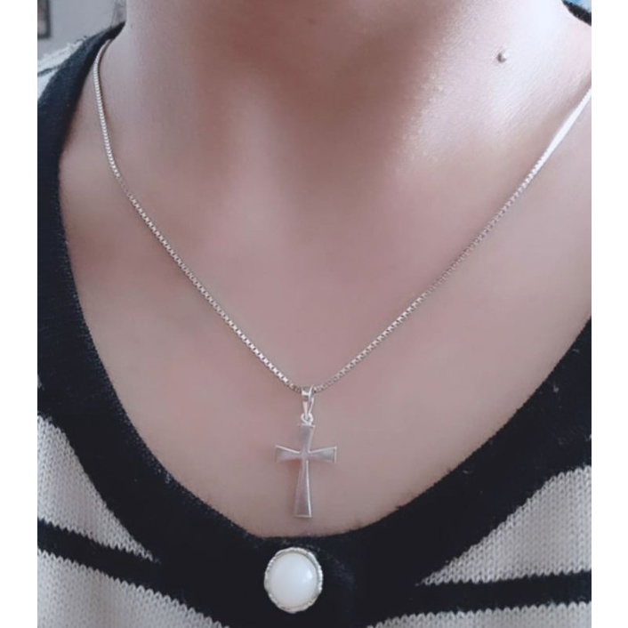 Detail KALUNG PERAK ASLI SILVER 925 LAPIS EMAS/KALUNG RANTAI ITALI KACA+LIONTIN SALIB POLOS/ASLI SILVER/FASHION WANITA