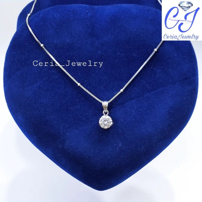 Aksesoris Fashion > Kalung > Kalung Perak Asli Silver Wanita Dewasa 925 lapis Emas Putih Model Itali Jedar Dengan Liontin Desi - Perhiasan Perak Wanita