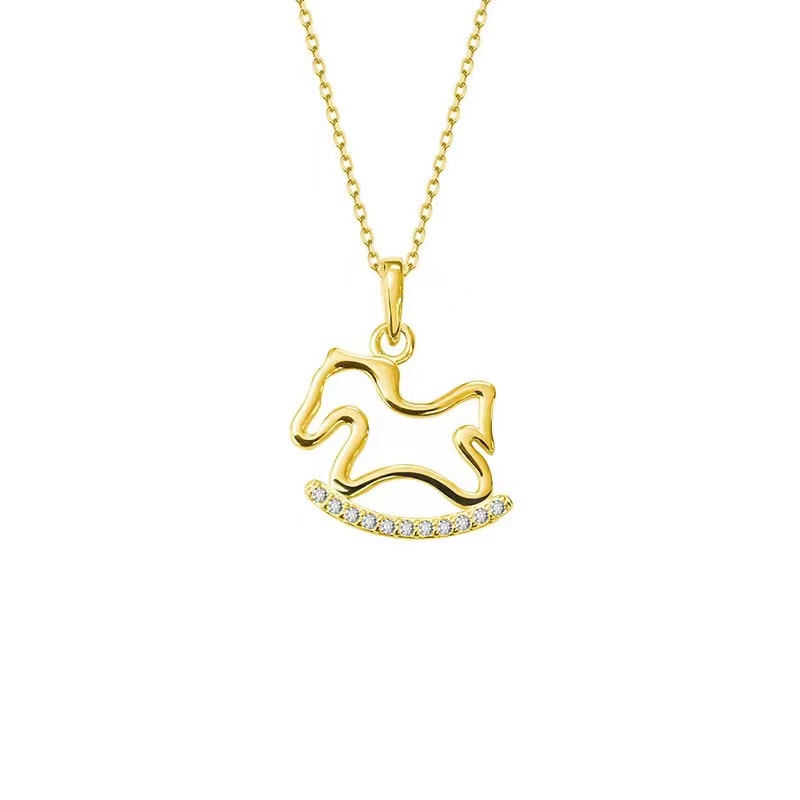 Detail Kalung Rantai Alloy Lapis Emas Dengan Liontin Kuda Kayu Untuk Wanita