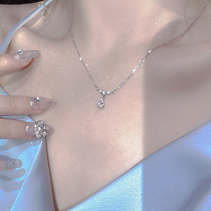 Detail Kalung Rantai Choker Liontin Berlian Bentuk Tetesan Air Warna Silver Untuk Wanita