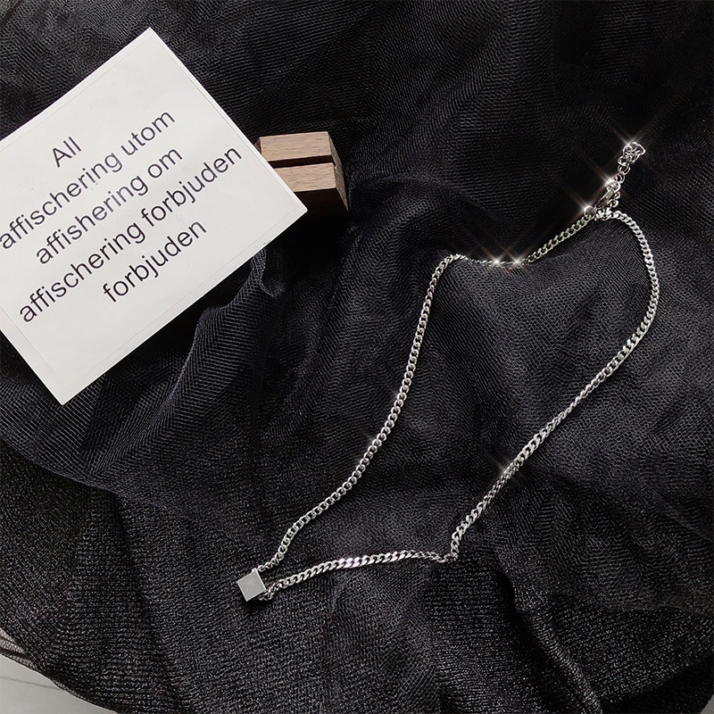 Detail Kalung Rantai Dengan Liontin Bentuk Kotak Geometris Gaya Hip Hop Korea
