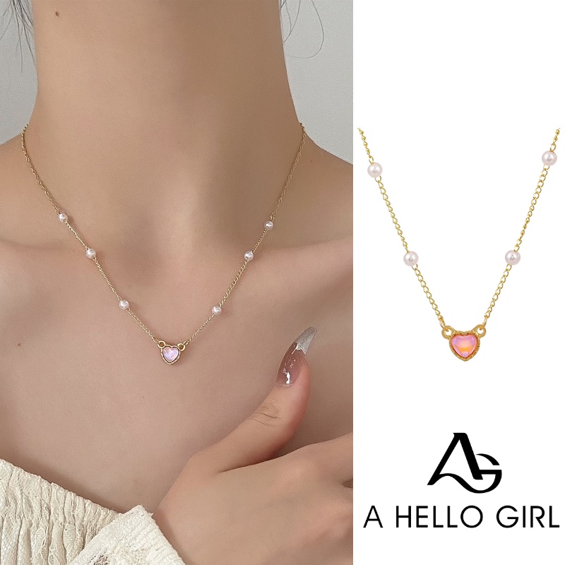 Detail Kalung Rantai Dengan Liontin Batu Opal Bentuk Hati Untuk Wanita