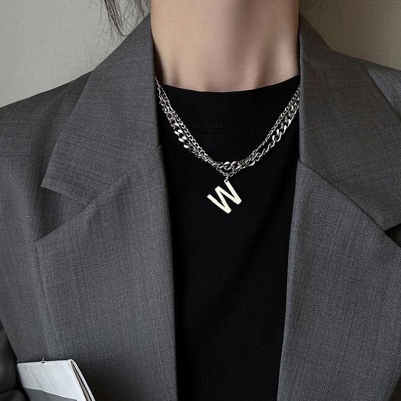 Detail Kalung Rantai Double Layer Bentuk Huruf W Bahan Metal Tebal Gaya Punk Untuk Wanita