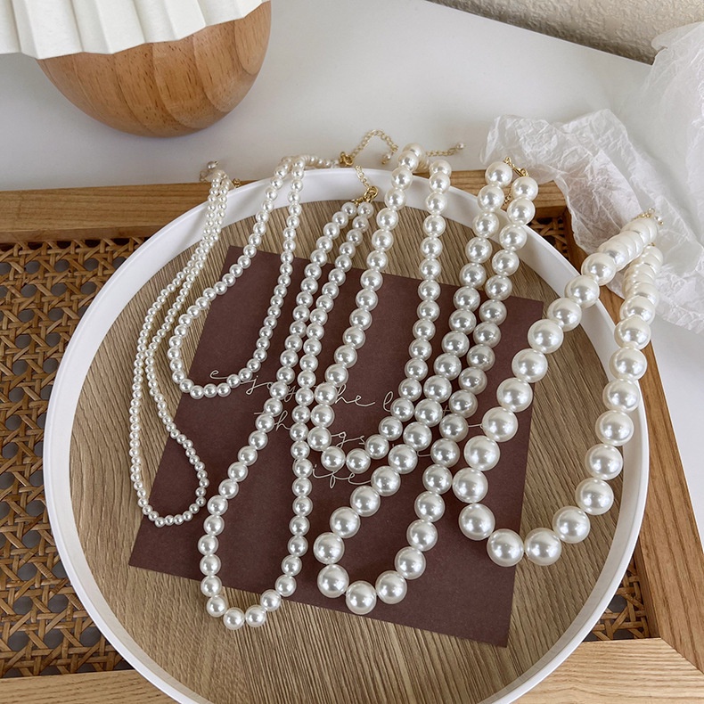 Ukuran: Kalung A panjangnya sekitar 43 + 5cm, diameter mutiara sekitar 4mm dan beratnya sekitar 4.2g Kalung B panjangnya sekitar 42 + 5cm, diameter mutiara sekitar 6mm dan beratnya sekitar 8g Kalung C panjangnya sekitar 41 + 5cm, diameter mutiara sekitar 8mm dan beratnya sekitar 13.8g Kalung D panjangnya sekitar 42 + 5cm, diameter mutiara sekitar 10mm, dan beratnya sekitar 21.8g Kalung e panjangnya sekitar 42 + 5cm, diameter mutiara sekitar 12mm dan beratnya sekitar 30,8g Kalung f panjangnya sekitar 41 + 5cm, diameter mutiara sekitar 14mm dan beratnya sekitar 41.6g