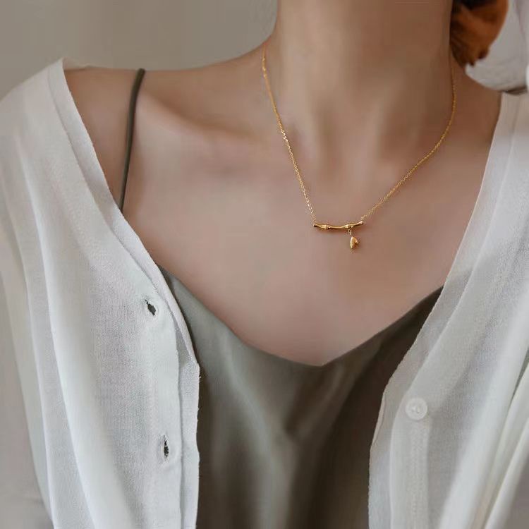 Detail Kalung Rantai Klavikula Bahan Titanium Steel Desain Bambu Untuk Wanita