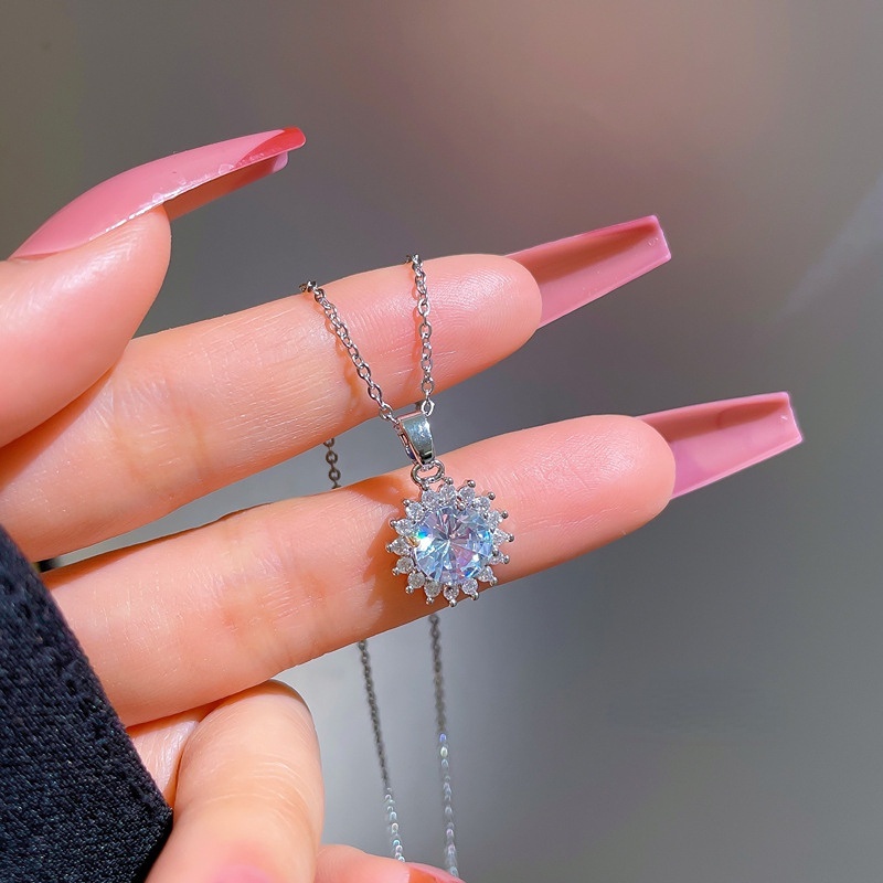 Detail Kalung Rantai Klavikula Bahan Titanium Steel Warna Silver Bentuk Bunga Matahari Untuk Wanita
