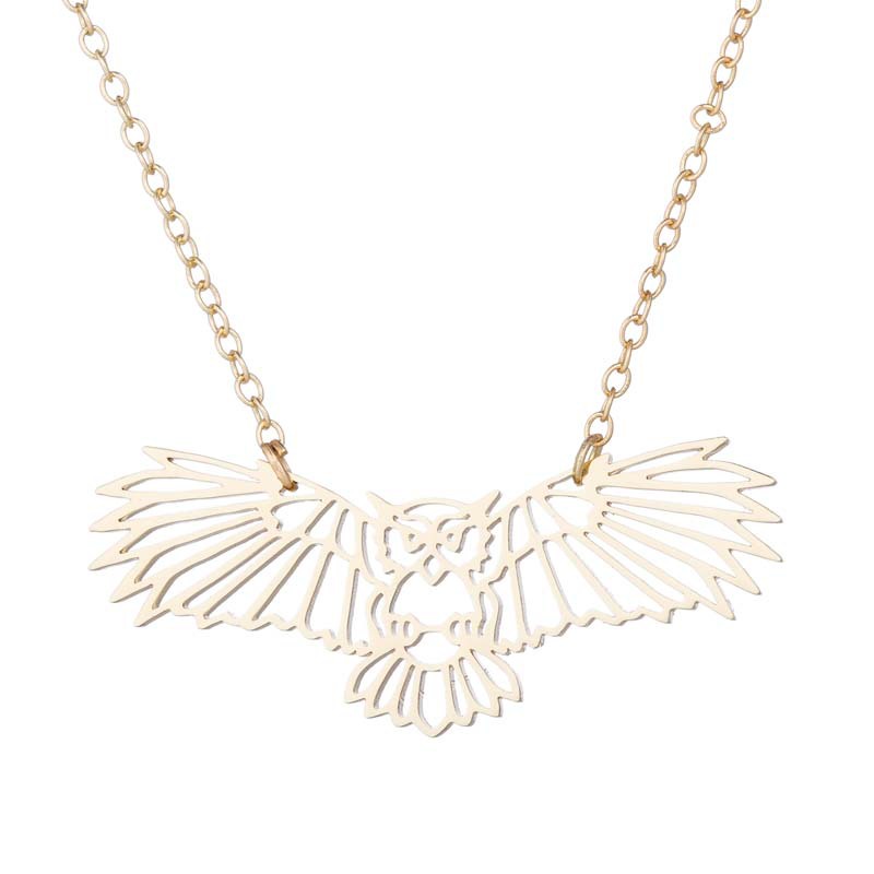 Detail Kalung Rantai Klavikula Desain Burung Hantu origami Geometris Rongga Untuk sweater