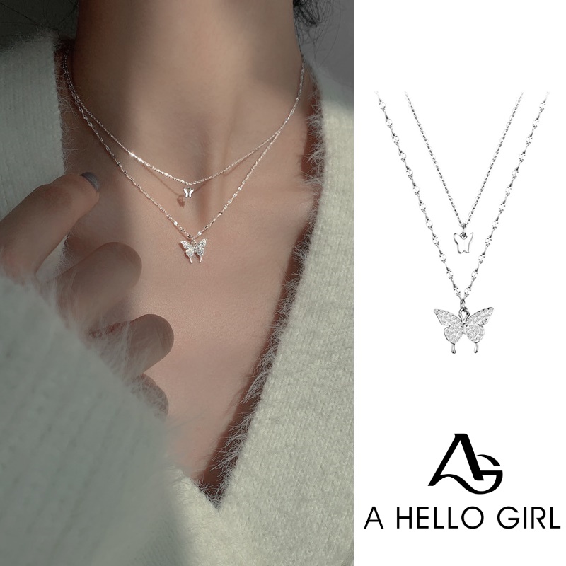 Detail Kalung Rantai Klavikula Double Layer Bentuk Kupu-Kupu Aksen Berlian Untuk Wanita