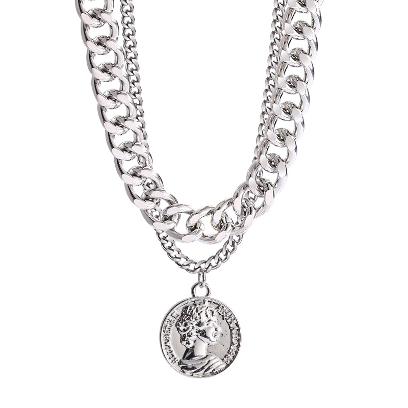 Detail Kalung Rantai Klavikula Lapisan Ganda Dengan Liontin Gaya Retro Untuk Aksesoris