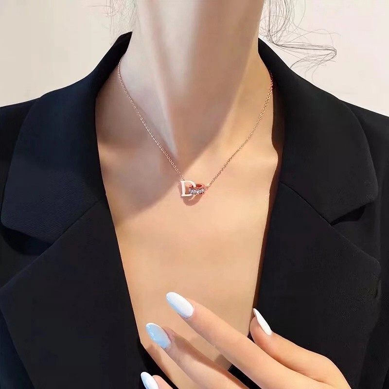 Detail Kalung Rantai Klavikula Liontin Huruf D Bahan Titanium Steel Gaya Korea