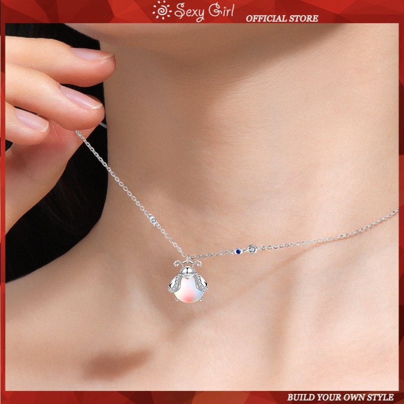 Detail Kalung Rantai Klavikula S925 Silver Liontin Kupu-Kupu Aurora Asimetris Untuk Perhiasan Wanita