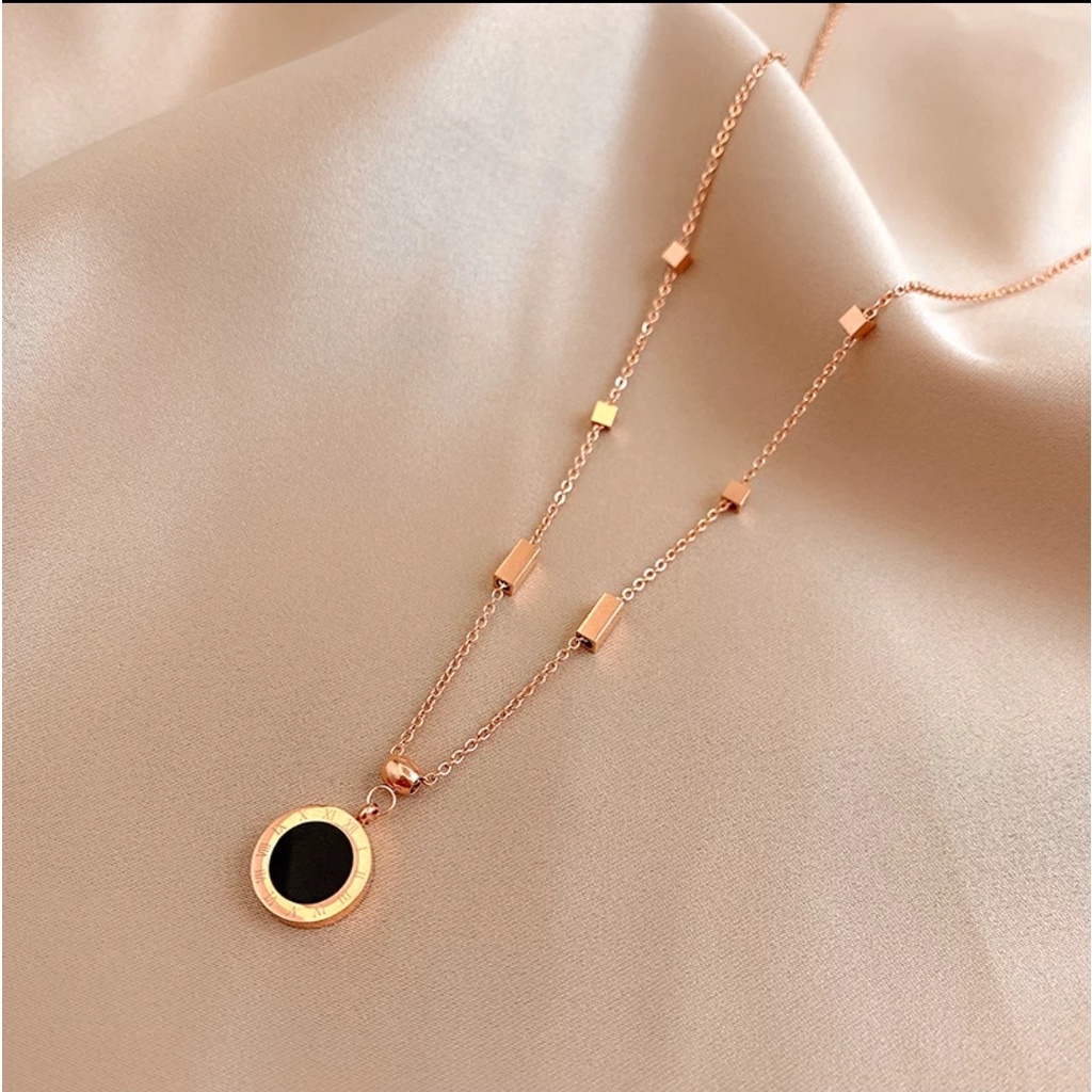 Detail Kalung Rantai Kubus Liontin Shell Angka Romawi 2 Sisi Black n White