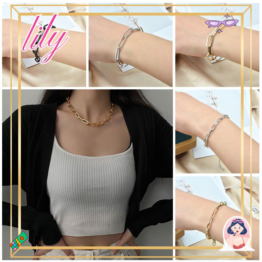 Detail Kalung Rantai LILY Pria Wanita Rantai Tebal Perhiasan Menarik Grunge Collares Bracelet