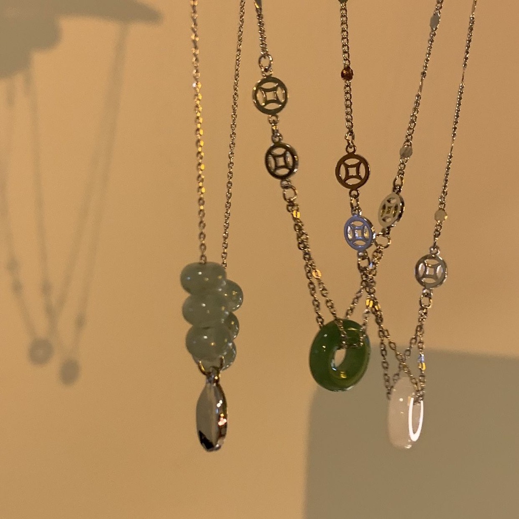 Detail Kalung Rantai Liontin Batu Giok Imitasi Bahan Alloy Untuk Wanita