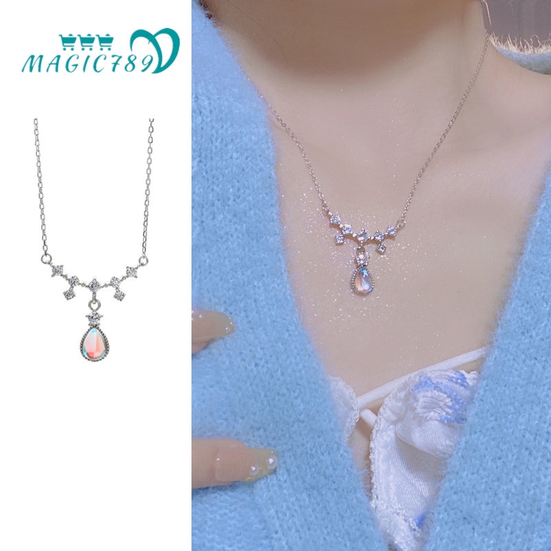 Aksesoris Fashion > Kalung > Rantai & Link > Kalung Rantai Liontin Batu Bulan Air Mata Mermaid Zircon Gaya Vintage Elegan Isi 789 Untuk Wanita