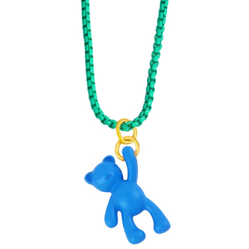 Detail Kalung Rantai Liontin Beruang Mini Bahan Tembaga Enamel Neon Untuk Wanita