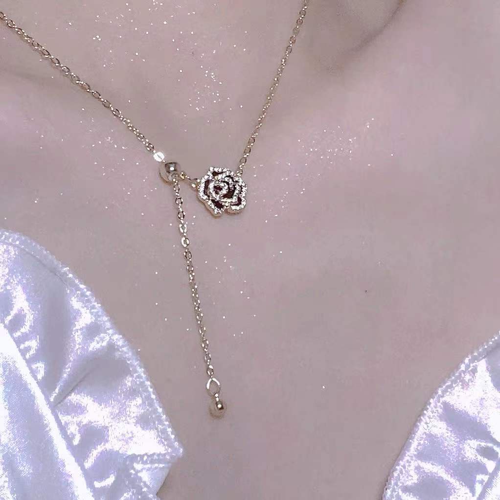 Detail Kalung Rantai Liontin Bunga Camellia Hias Berlian Imitasi Ala Retro Warna Hitam Untuk Wanita
