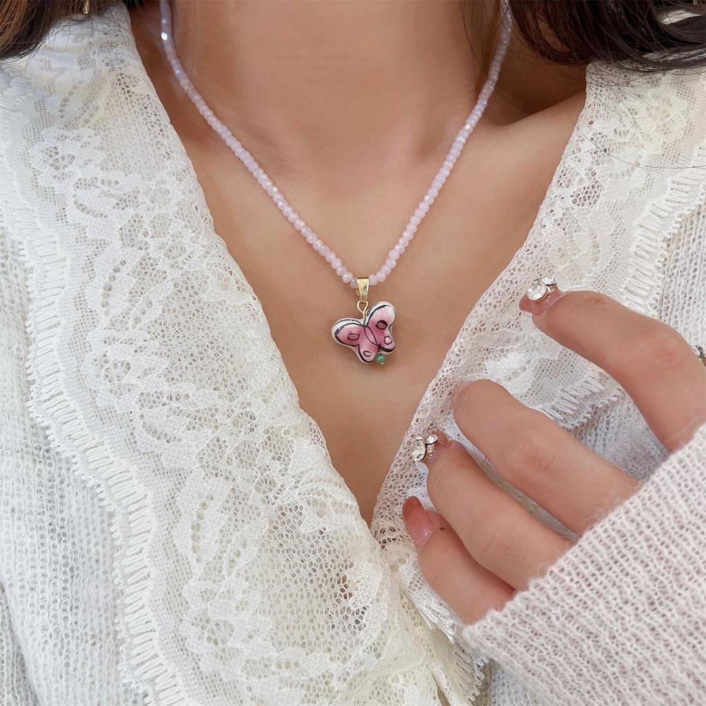 Detail Kalung Rantai Liontin Kupu-Kupu Hias Kristal Imitasi Simple Ala Korea / Retro Untuk Wanita