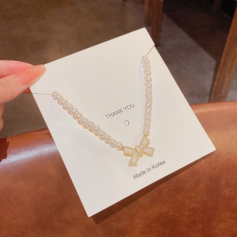 Detail Kalung Rantai Manik-Manik Mutiara Simple Fashion Choker Klavikula Busur Untuk Aksesoris Perhiasan Wanita