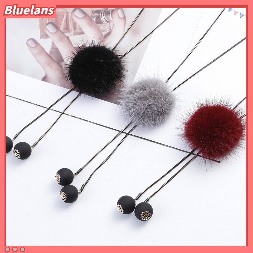 Detail Kalung Rantai Panjang Dengan Liontin Manik-Manik Pompom Rumbai Untuk Wanita