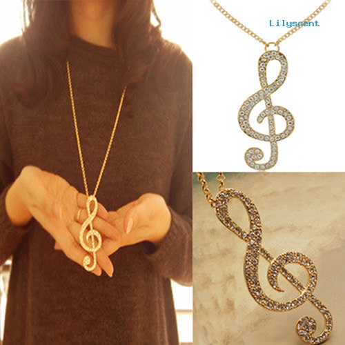 Detail Kalung Rantai Panjang Liontin Note Musik Aksen Berlian Imitasi Untuk Wanita