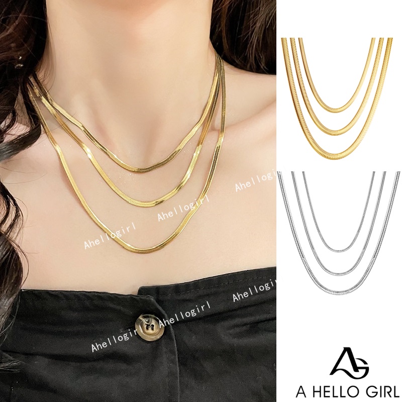 Detail Kalung Rantai Ular Datar Titanium Steel Kepribadian Hip Hop Unisex