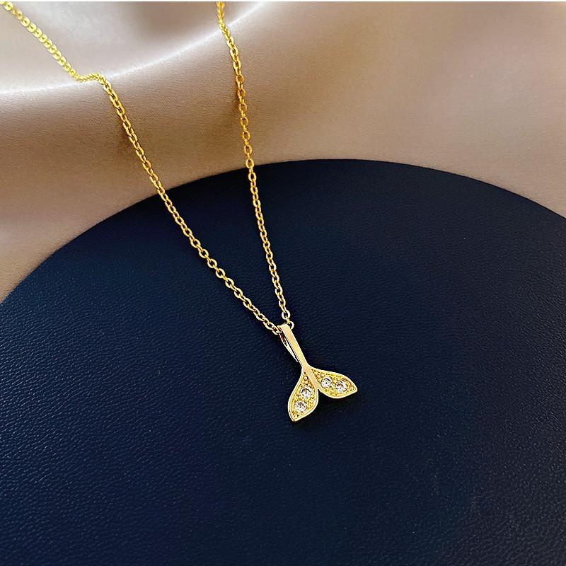 Detail Kalung Rantai Wanita Liontin Ekor Lumba Ikan Kristal
