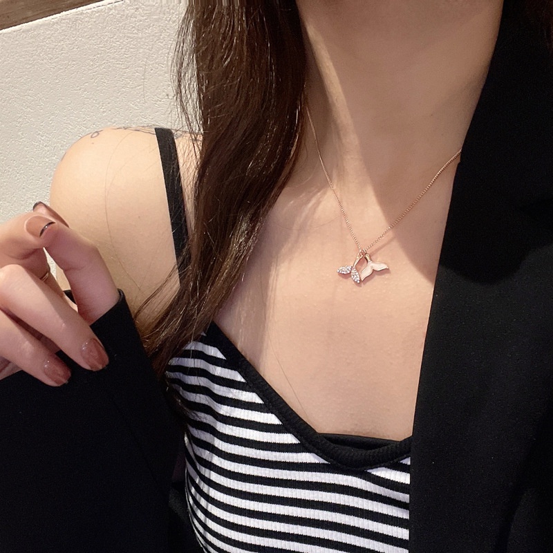 Detail Kalung rose gold 18k Desain Ekor Ikan Hias Berlian Putih Untuk Wanita