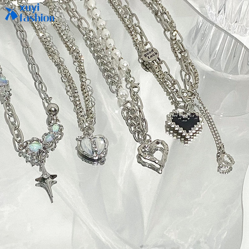 Detail Kalung Salib Hati Tulip Rantai Liontin Mutiara Kristal Permata Silver Untuk Aksesoris Perhiasan Wanita
