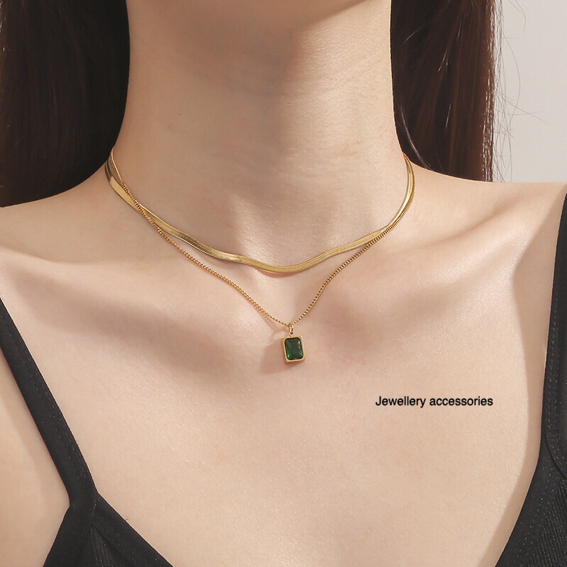 Detail Kalung Titanium 2 Layer Diamond Korea Elegan Fashion Style Premium