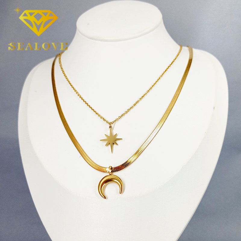 Detail Kalung Titanium Anti Karat Bulan Bintang Emas 18K Cantik Mewah Korea Rantai Belut Aksesoris Wanita Perhiasan