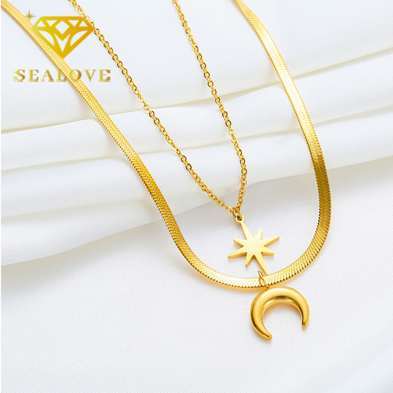 Aksesoris Fashion > Kalung > Rantai & Link > Kalung Titanium Anti Karat Bulan Bintang Emas 18K Cantik Mewah Korea Rantai Belut Aksesoris Wanita Perhiasan