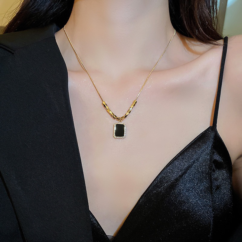 Detail Kalung Titanium Black Square Kotak Elegan Korea Fashion Style