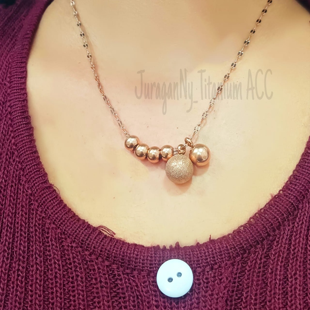 > JENIS : KALUNG BOLA ZICRON TITANIUM > MODEL : NO BRAND > MEREK : Titanium > GAYA : WANITA > WARNA : GOLD,Rose Gold > SIZE : 45 CM > BAHAN : Asli Titanium 2. KEUNGGULAN
