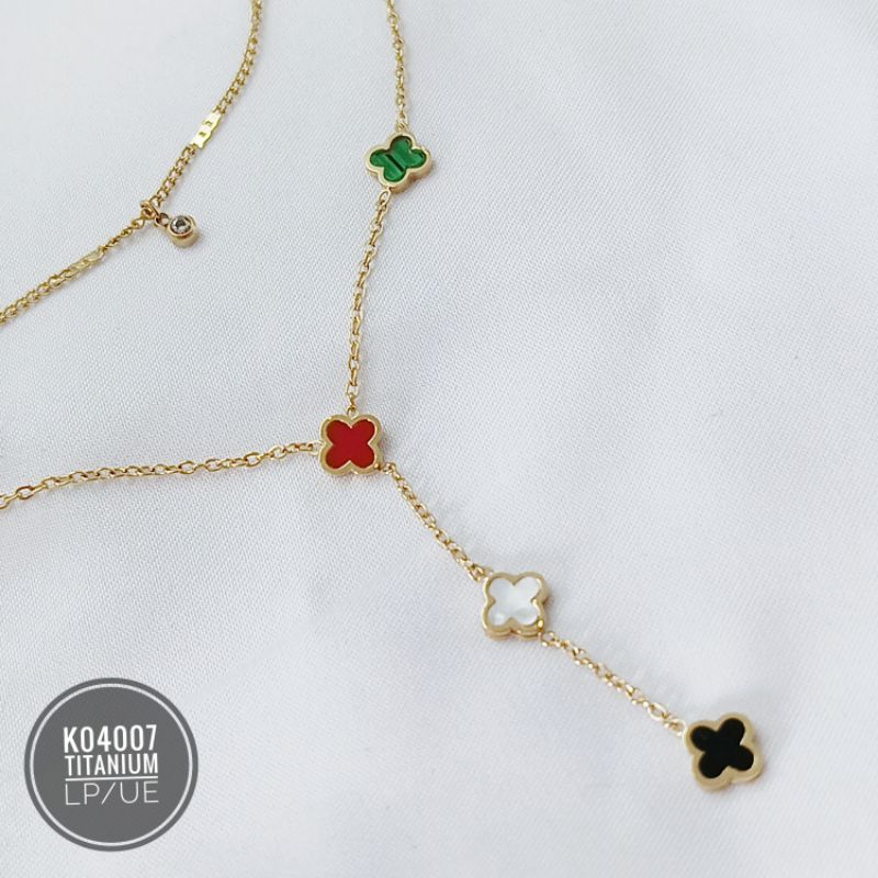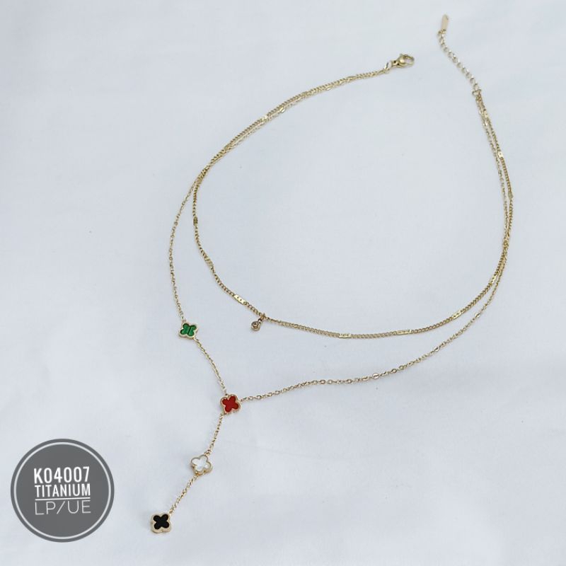 Video perkenalan produk Kalung Titanium double layer Clover gold K04007. Sumber: Shopee.
