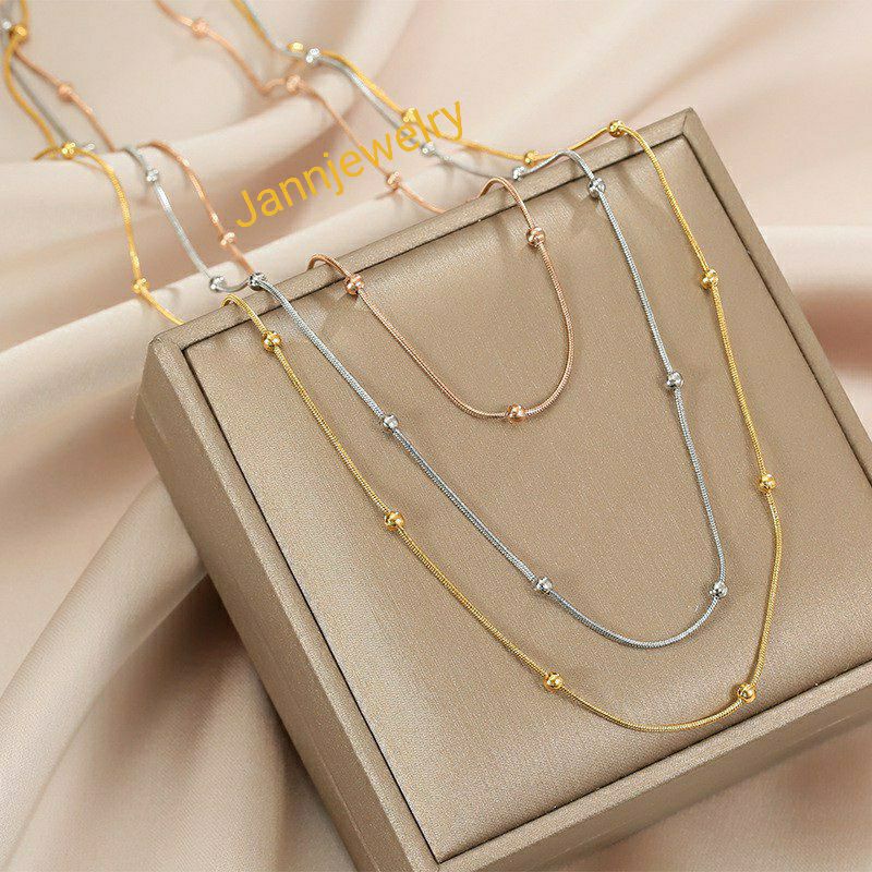 Type : Necklace Material : Titanium Steel 100% (BUKAN ALLOY) Color : Gold, Rosegold, Silver Panjang : Panjang Kalung 50 cm