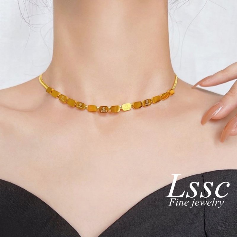 Detail Kalung Titanium Huruf LOVE Nugget Emas 18K Anti Karat Terbaru 2022 Perhiasan Aksesoris Wanita Fashion