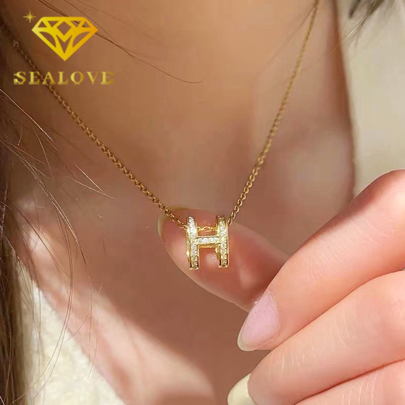 Detail Kalung Titanium Huruf Wanita Anti Karat Berlian Emas 18K Aesthetic Simple Fashion Aksesoris Perhiasan