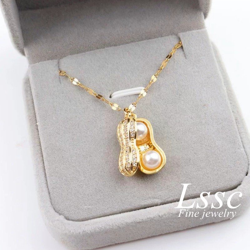 Detail Kalung Titanium Kacang Mutiara Cantik Emas 18K Anti Karat Perhiasan Aksesoris Wanita Fashion Korea