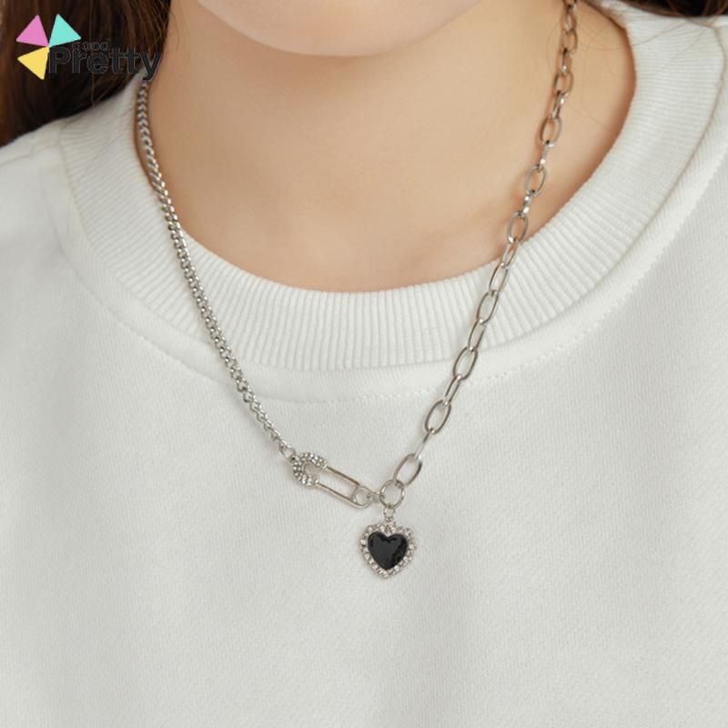 Detail Kalung Titanium Love Hitam Korea Retro Hip Hop Gaya Necklace Aksesori Fashion - PD