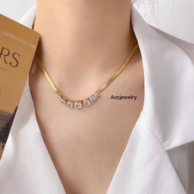 Kalung Titanium Mewah Diamond Rantai Belut Lapis Emas
