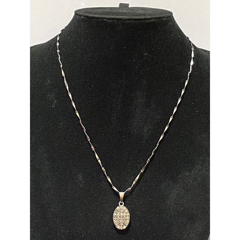 kalung titanium silver berkilau | kalung padi + Liontin permata oval