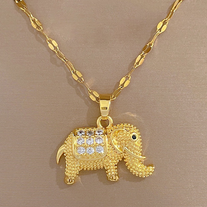 Detail Kalung Titanium Wanita Emas gajah Wanita Fashion Perhiasan Anti Luntur