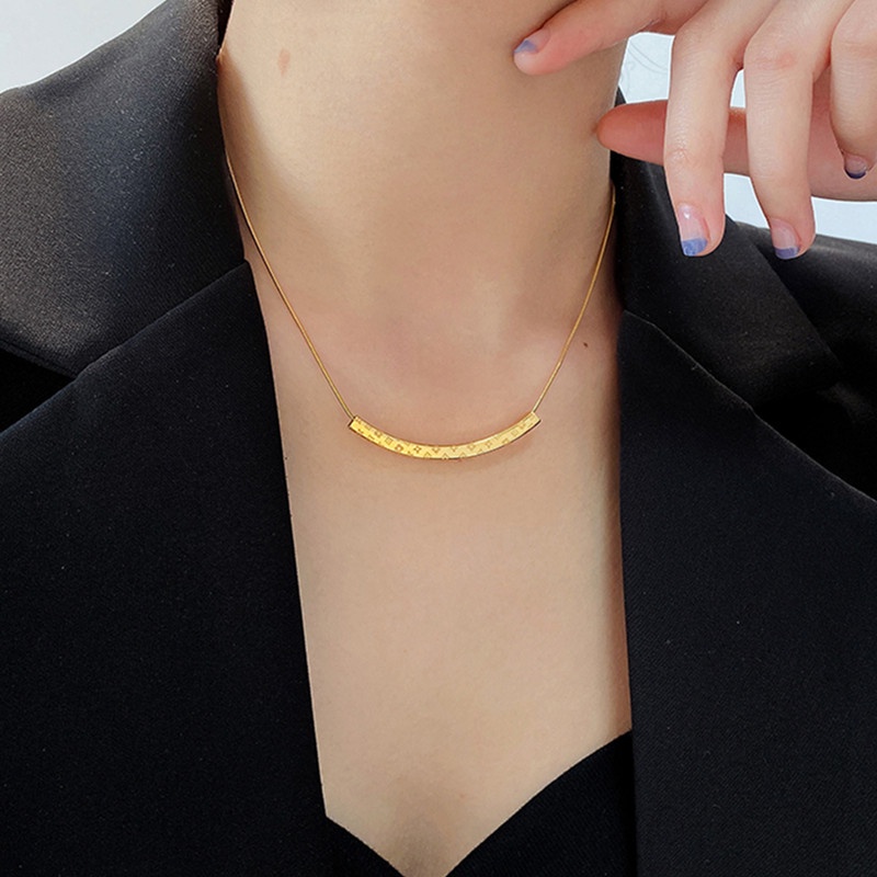Detail Kalung Titanium Wanita Emas 18K Tahan Karat Tidak Luntur Motif Ukiran Rantai Tulang Ular Semanggi Empat Daun