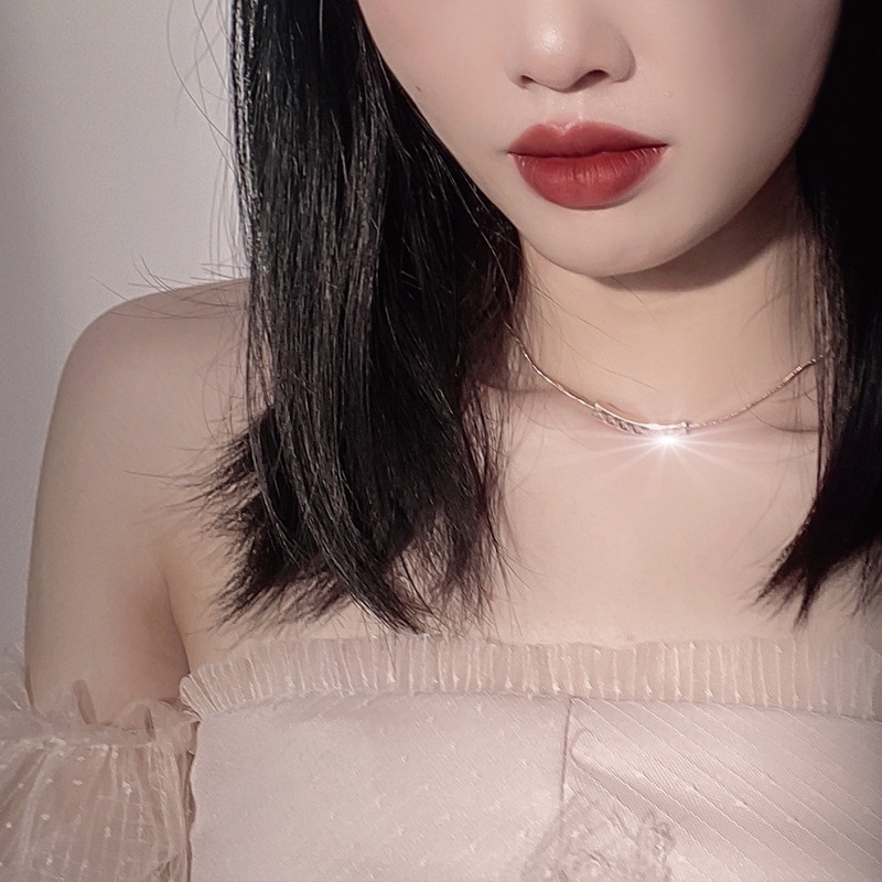 Kalung Titanium Wanita Emas 18K Tahan Karat Tidak Luntur Motif Ukiran Rantai Tulang Ular Semanggi Empat Daun