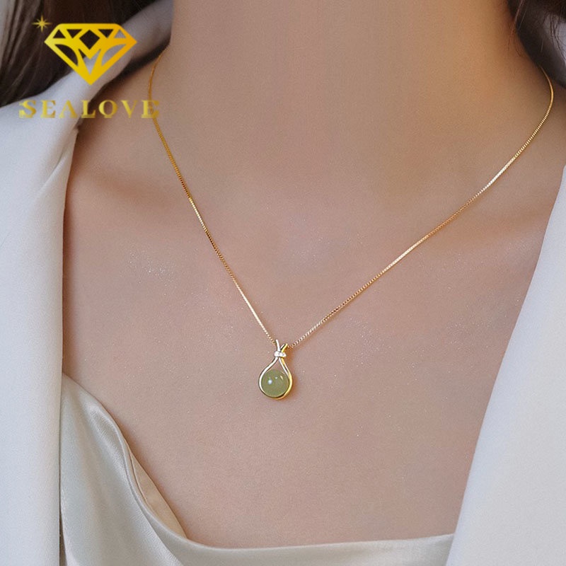 Detail Kalung Titanium Wanita Giok Hetian Tas Keberuntungan Emas 18K Anti Karat Aesthetic Cantik Fashion Aksesoris Perhiasan