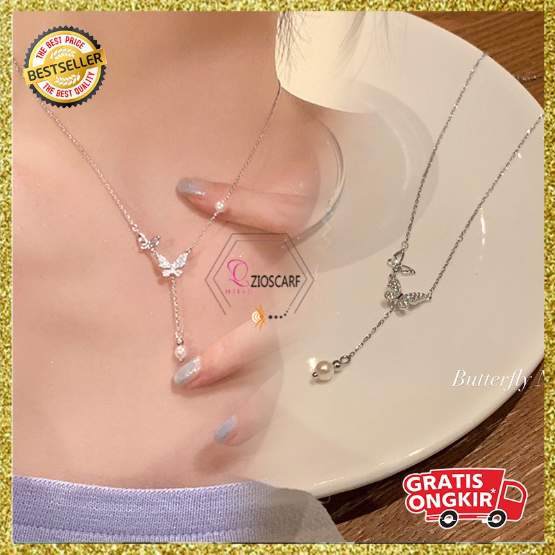 Detail Kalung Titanium Wanita Korea Kupu-Kupu Lucu Rumbai Aksesoris Hiasan Perempuan KLG55